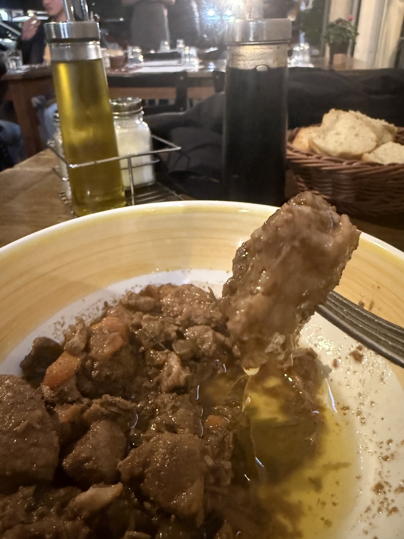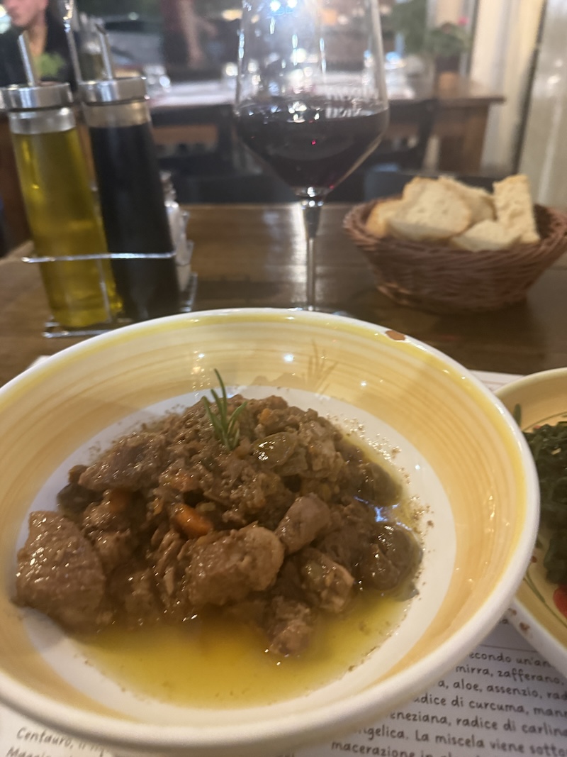 メインに注文したのは、ローズマリーの香りが鮮やかに立ち昇る、肉の煮込み料理(スペッツァティーノ)です。