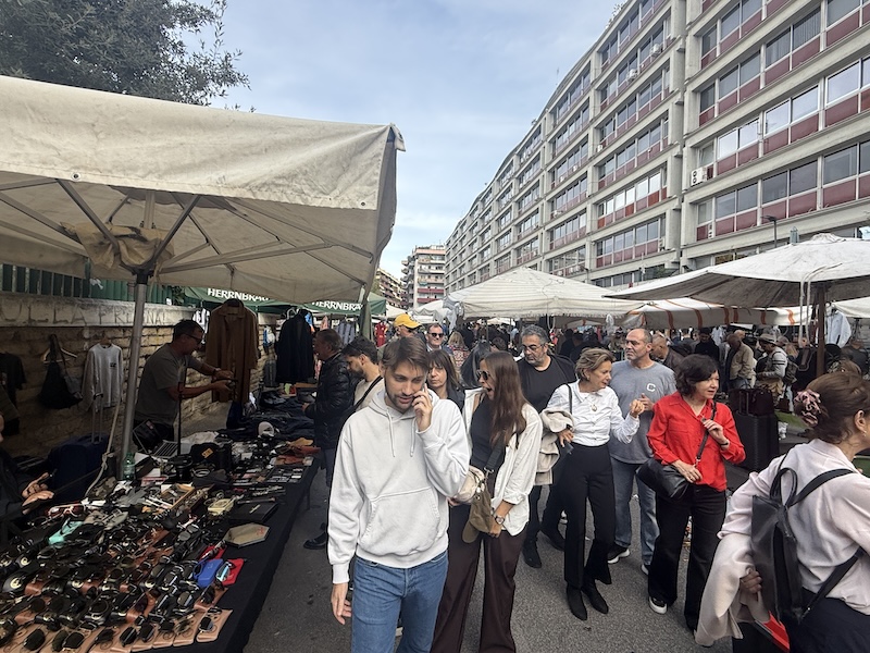 通りを埋め尽くすように、無数の露店が立ち並ぶ蚤の市。