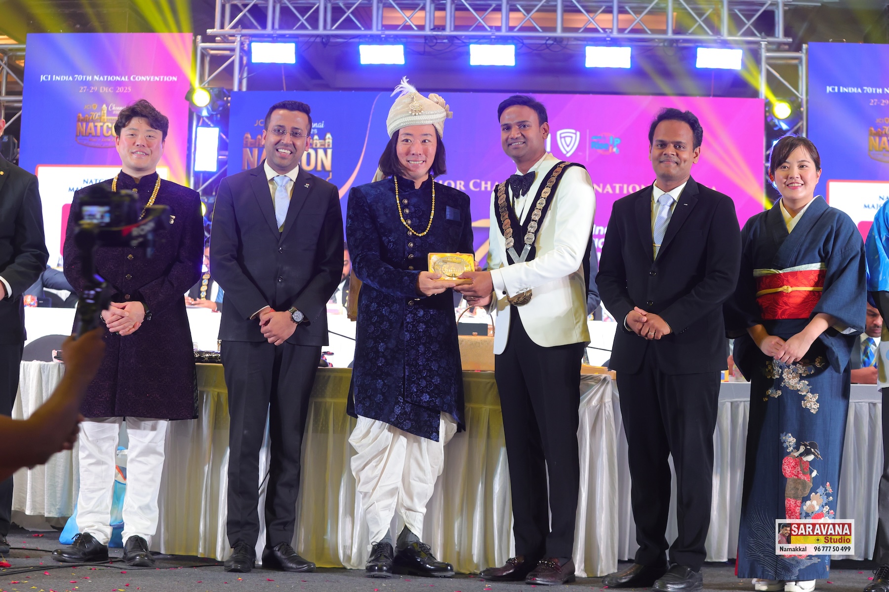 記念のメダルを受け取った瞬間、ステージの照明がピンクや黄色に輝いていて、会場からは歓声が上がっていました。隣に立つ各国のメンバーたちも、それぞれの国の伝統衣装を纏っている。 あの光景を、自分は忘れないと思います。