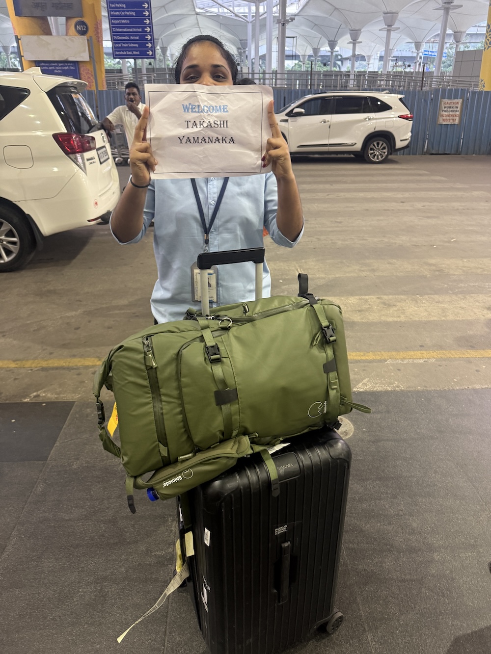 到着ゲートを出ると、自分の名前を書いたボードを持った女性が立っていました。「WELCOME TAKASHI YAMANAKA」。ちゃんと迎えに来てくれている。