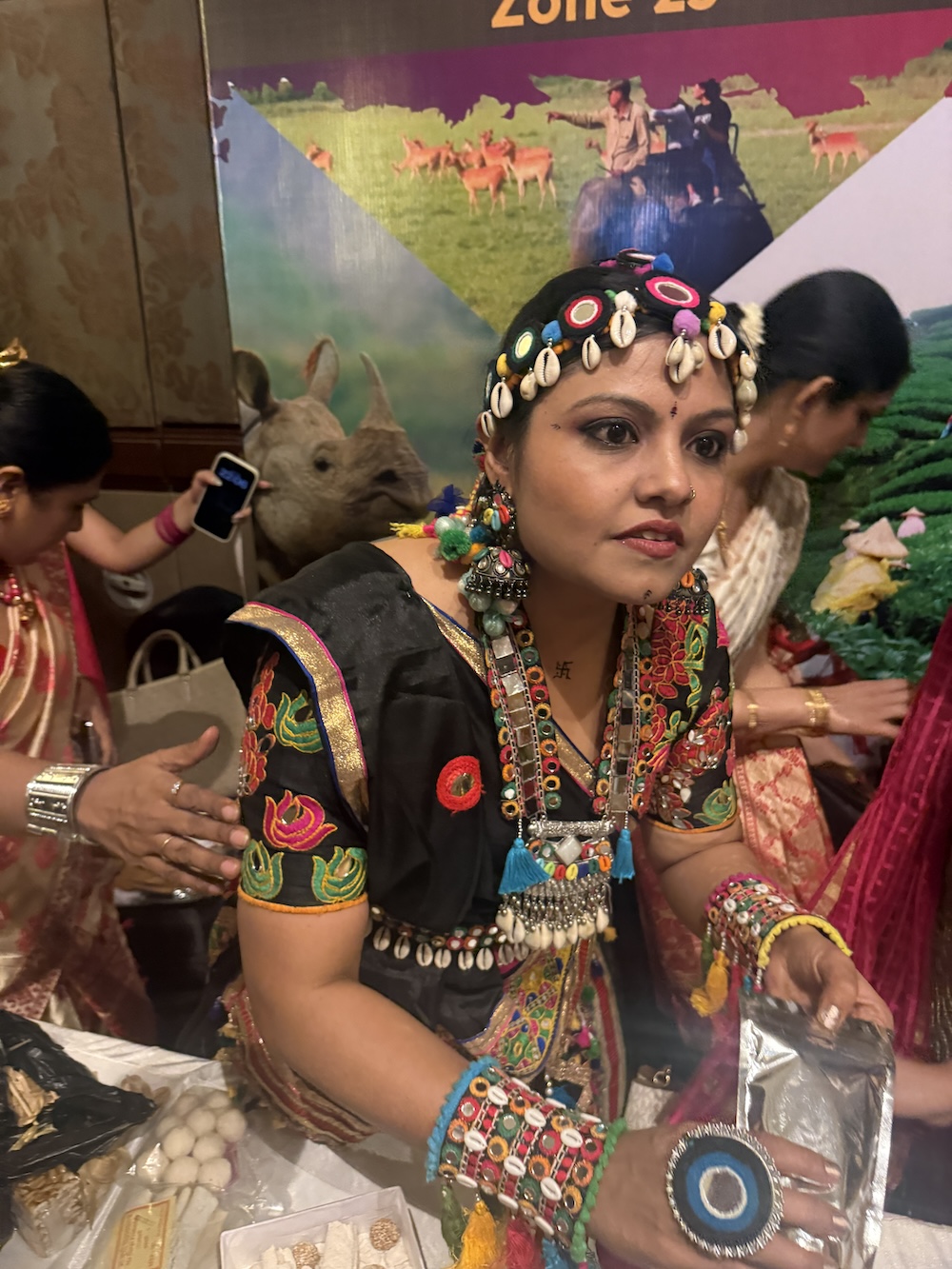 天井が高い。柱が太い。どこを見てもインドの伝統的な意匠が施されていて、それでいて現代的な洗練がある。ここが3日間の舞台かと思うと、緊張と高揚が同時に押し寄せてきました。 参加証を受け取りました。