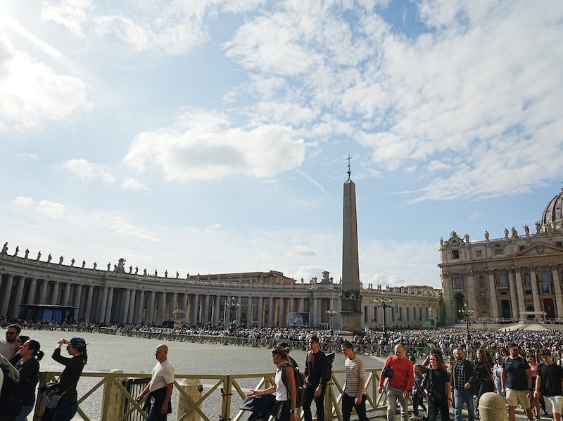 自分がバチカンに入国した日は、カトリックにおいて全ての聖人を崇める重要な祝日「諸聖人の日(All Saints’ Day)」でした。サン・ピエトロ広場(Piazza San Pietro)に辿り着いた瞬間、その圧倒的なスケールと、広場を埋め尽くす人々の熱気に言葉を失いました。