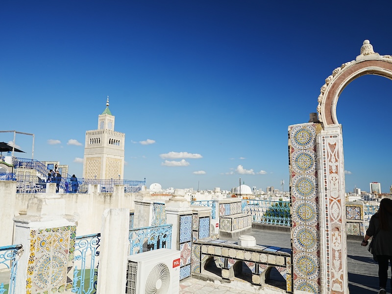 その一つひとつの断片が、チュニジアという国が持つ多様で力強い文化の地層を物語っていました。また、路地裏の小さなカフェでは、地元の人々が静かに会話を楽しみ、タイル作りの壁面が独特の風情を醸し出していました。