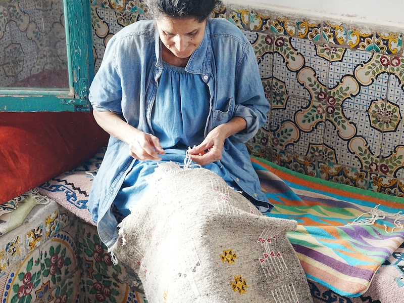 タイルの横では、伝統的な織物(ラグ)を黙々と織る女性の姿があり、その指先の動き一つひとつが、文化を継承していくという行為の尊さを無言で示しているようでした。