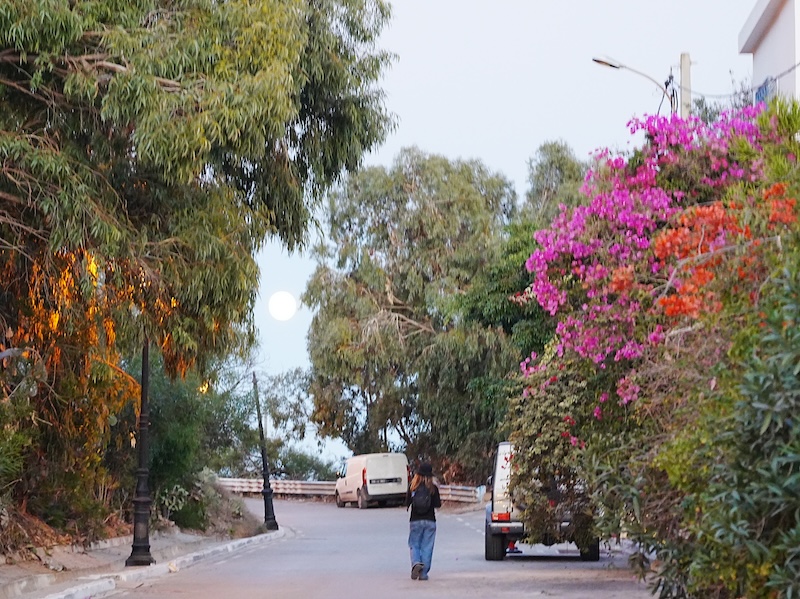 一回目に訪れた昼のシディ・ブ・サイドは、地中海の強い陽光を浴びて、すべての建物が白と青の二色で鮮やかに発光しているようでした。
