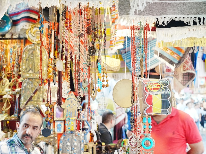 一歩足を踏み入れれば、そこには日常を忘れさせるような静謐で美しい世界が広がっています。お土産屋さんが並ぶ通りには、中東や北アフリカ特有のスパイスや革製品の香りが漂い、自分の嗅覚を心地よく刺激しました。