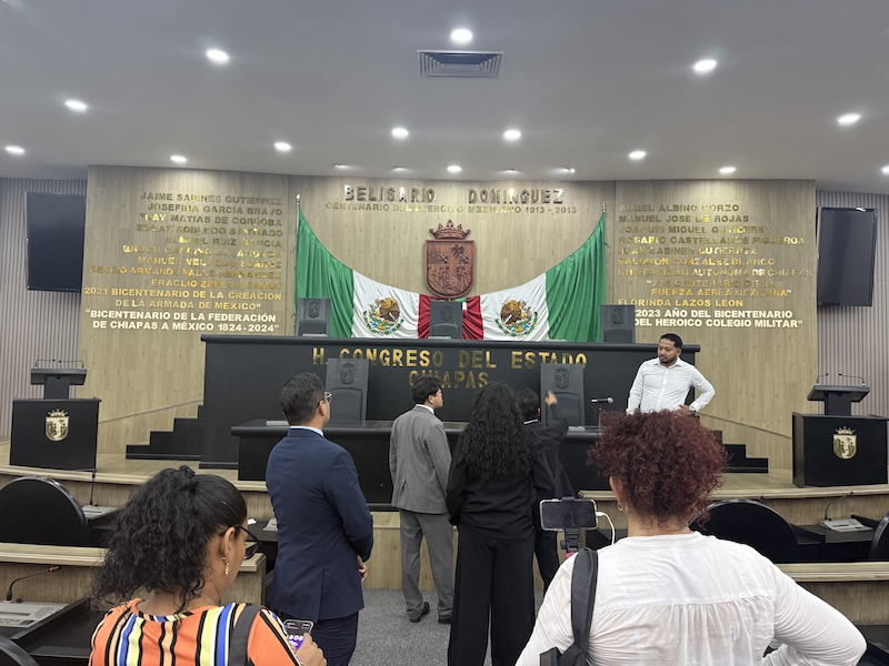 翌朝、訪れたのはチアパス州議会(H. Congreso del Estado)。 昨日までの祝祭の空気とは打って変わり、そこには歴史の重みが静かに降り積もっていました。一歩足を踏み入れると、ひんやりとした静寂が自分を包み込みます。