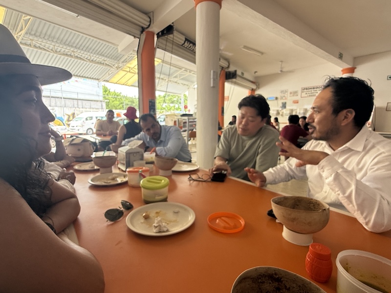 公式訪問を終えた後の、夕暮れ時の食事。 店内に漂うサルサの香りと、オレンジ色に染まるテーブル。仲間たちとトルティーヤをちぎり合い、笑いながら過ごすひとときは、張り詰めていた心を優しく解きほぐしてくれました。 料理の味は言わずもがな。でも、それ以上に、一つの皿を囲んで語り合うその時間が、何よりも贅沢なご馳走でした。