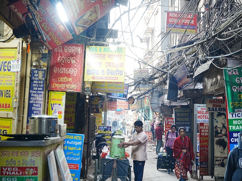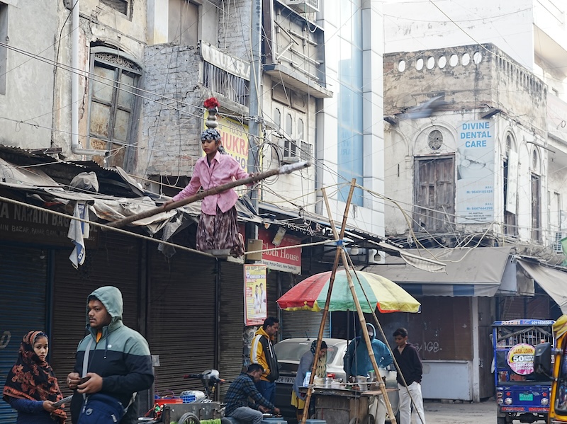 パハールガンジの路地を歩いていると、ふと視線を上げた先に、信じられない光景が広がっていました。