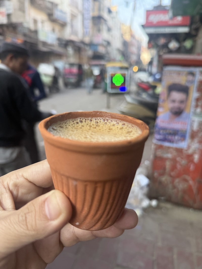 差し出されたのは、素焼きのクルハッド(kulhad)に注がれた、湯気立つチャイでした。