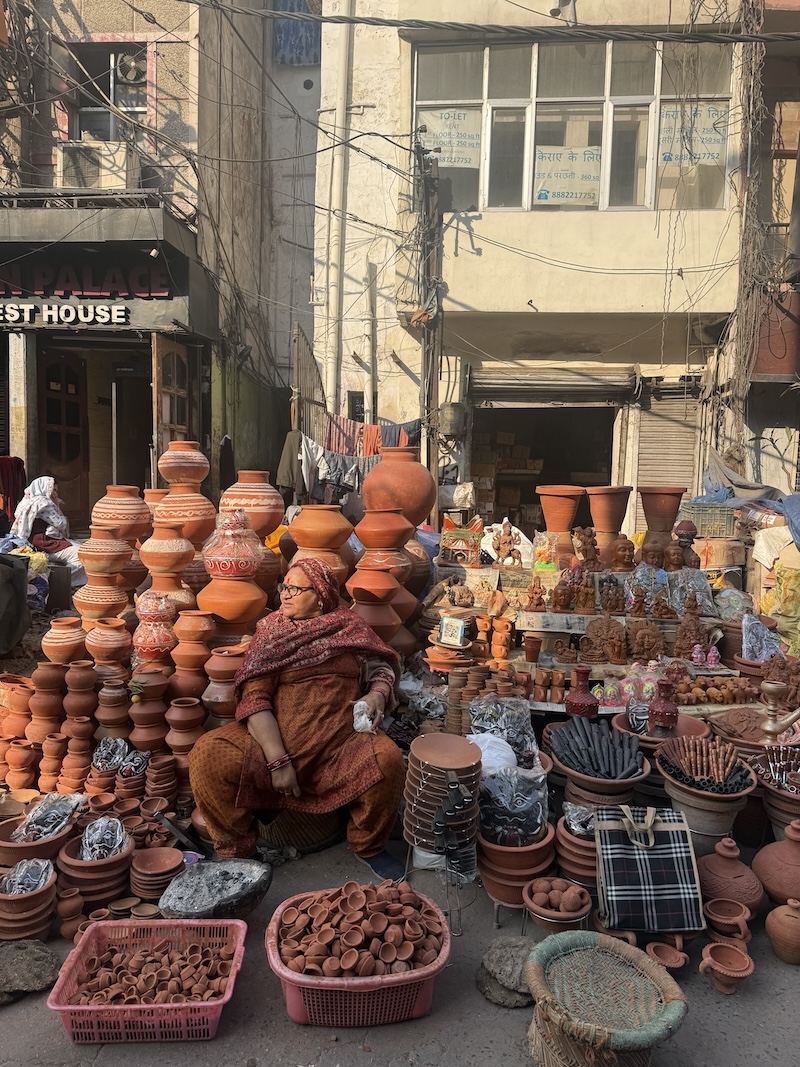 街に溶け込む陶器商の女性と、オールド・デリーの息吹。