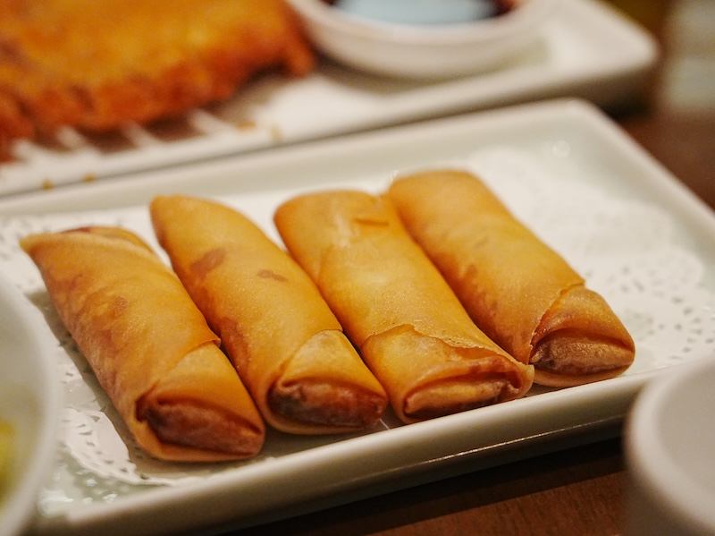 黄金色の春巻: 完璧に揚げられた春巻は、サクッとした食感の後に素材の甘みが追いかけてくる逸品。